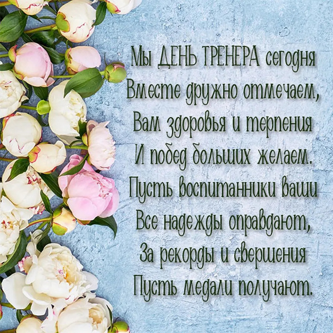 30 октября в России отмечается День тренера. Предлагаем Вам большую коллекцию красивых открыток и картинок с Днём тренера. Вы можете бесплатно скачать открытку с поздравлениями или картинку с надписями и отправить её своим близким, друзьям или коллегам через социальные сети («Одноклассники», «ВКонтакте») или мессенджеры (WhatsApp, Telegram, Viber).